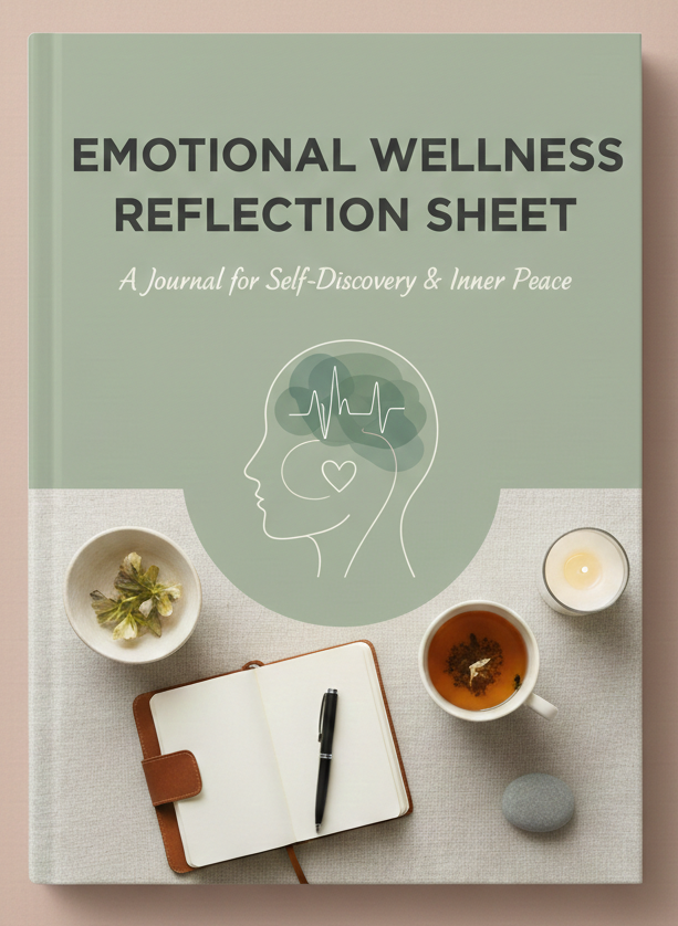 A free emotional wellness reflection sheet focused on emotional awareness, emotional regulation, and self-understanding, using simple prompts and grounding practices to support everyday emotional wellbeing.
